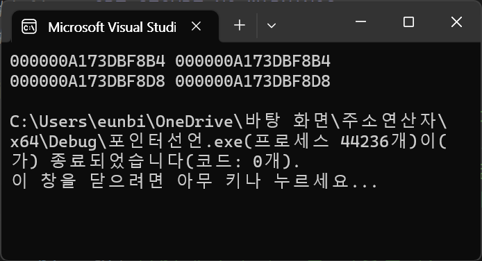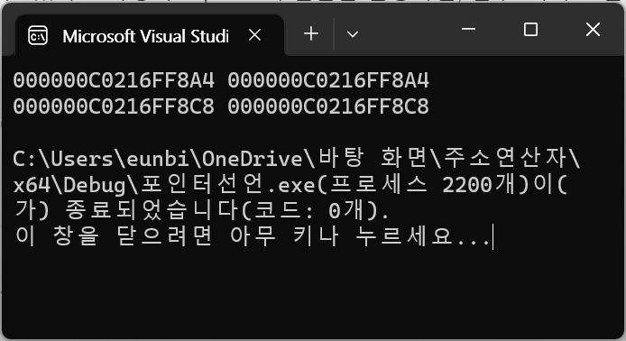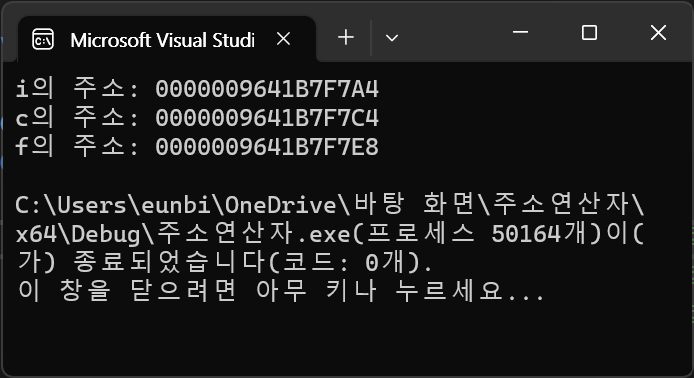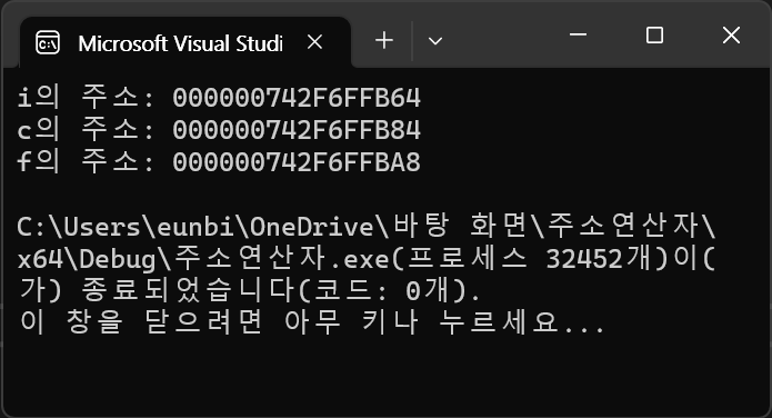 printf("c의 주소: %p\n", &c); //변수 c의 주소 출력